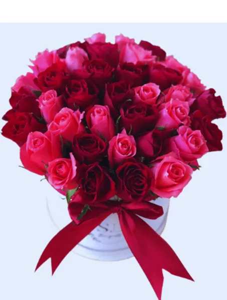 The enchanting "Round Vase with Mixed Roses," a breathtaking floral masterpiece that showcases the timeless beauty of roses in an exquisite display. Nestled within a stylish round vase, this arrangement brings together a captivating assortment of roses in various colors, creating a harmonious symphony of love and elegance.